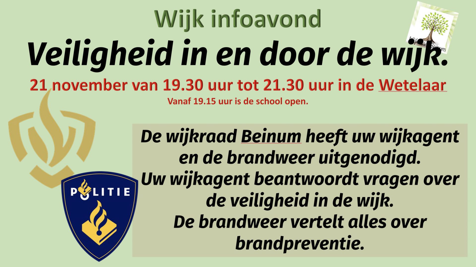 Wijk Infoavond met brandpreventie en kennismaking wijkagent!