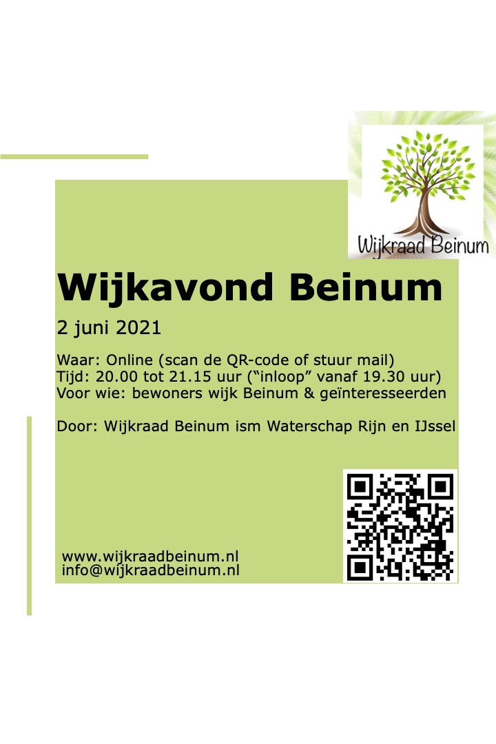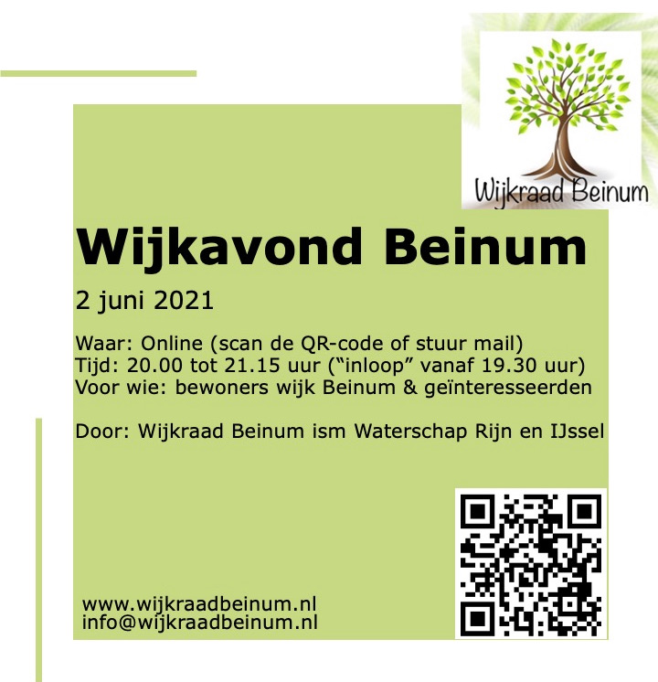 Op woensdag 2 juni 2021 organiseert de wijkraad Beinum haar jaarlijkse info-avond!. Dit keer online, zodat iedereen corona-proof kan deelnemen.